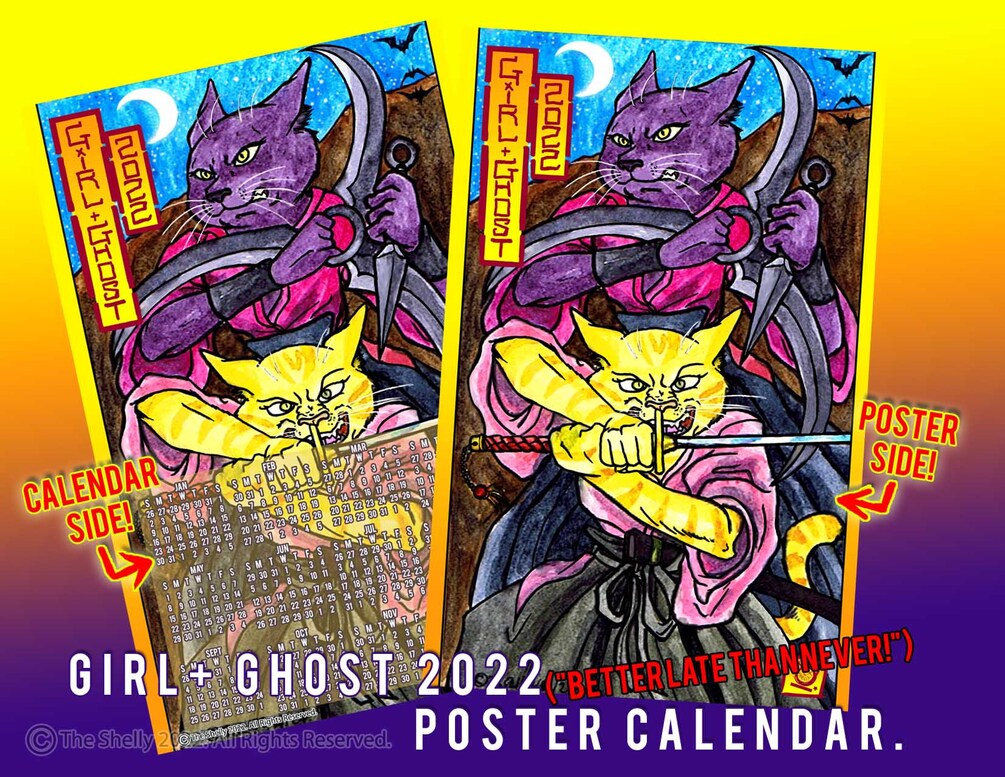 The "BETTER LATE THAN NEVER" GIRL + GHOST Double Sided Poster Calendar for 2022! ***CLEARANCE SALE!!!***
