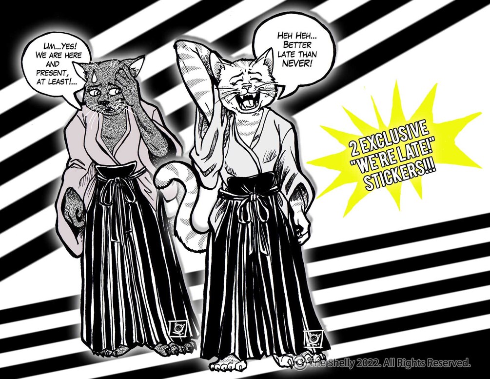 For now, please enjoy this poster calendar that is designed to be a wall poster on the back side of the calendar side to be enjoyed for MANY years to come! Plus the 2 FREE EXCLUSIVE "WE'RE LATE!" stickers one each of Girl and Ghost!